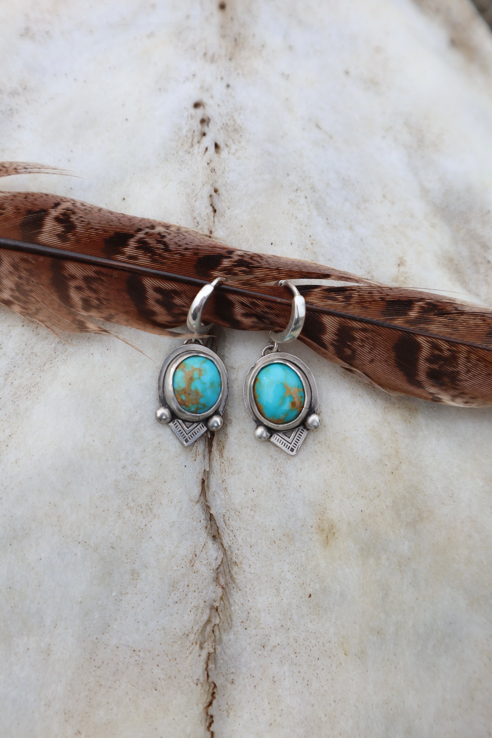 Sonoran turquoise and sterling silver huggie earrings with stamped detailing. Stamped starling and signed with my makers mark.